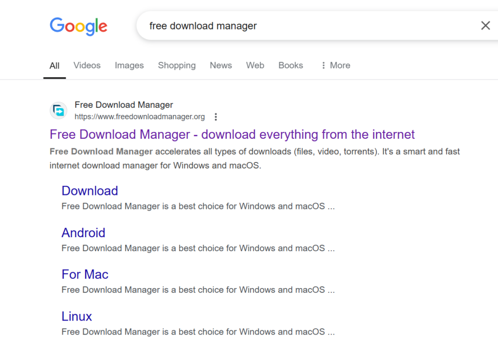 - Open Google and search for Free Download Manager.