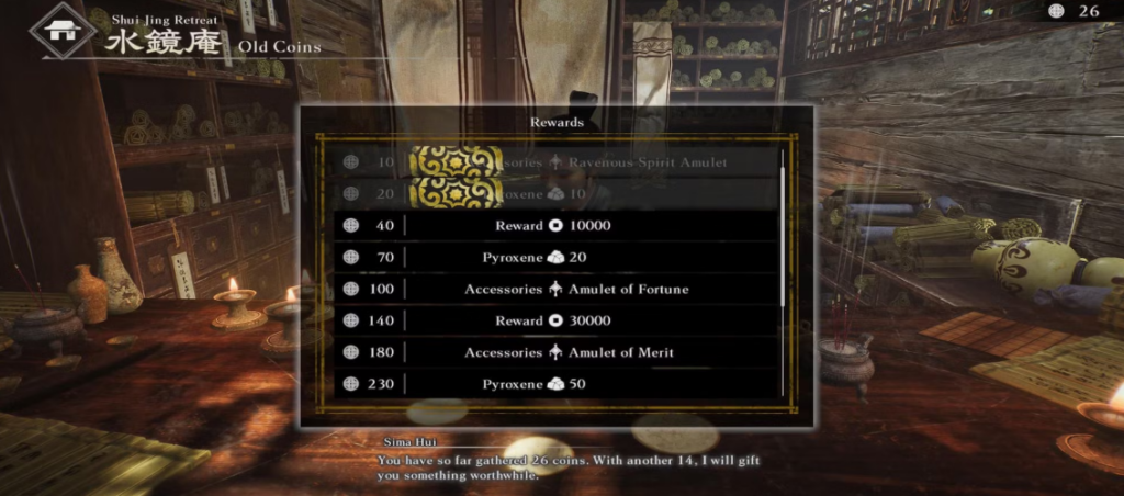 - Collect Old Coins: As you venture into the Overworld, you may get old coins from Bond Interactions with the officers or as Regional Peace rewards. Trading these coins at Shui Jing Retreat can also fetch you some Gold.