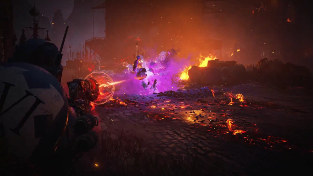 The latest addition to the Space Marines’s arsenal is the power thermal ray weapon, the Neo-Volkite Pistol. The secondary firearm shoots lethal beams that burn and decimate any and all heretics. Unlike other ballistic or laser weapons, the Neo-Volkite Pistol blasts heat rays onto enemies, and focusing on one enemy ramps up the thermal damage, leading to the enemy exploding. The weapons deals accumulative thermal damage and, upon explosion, deal damage to nearby enemies.